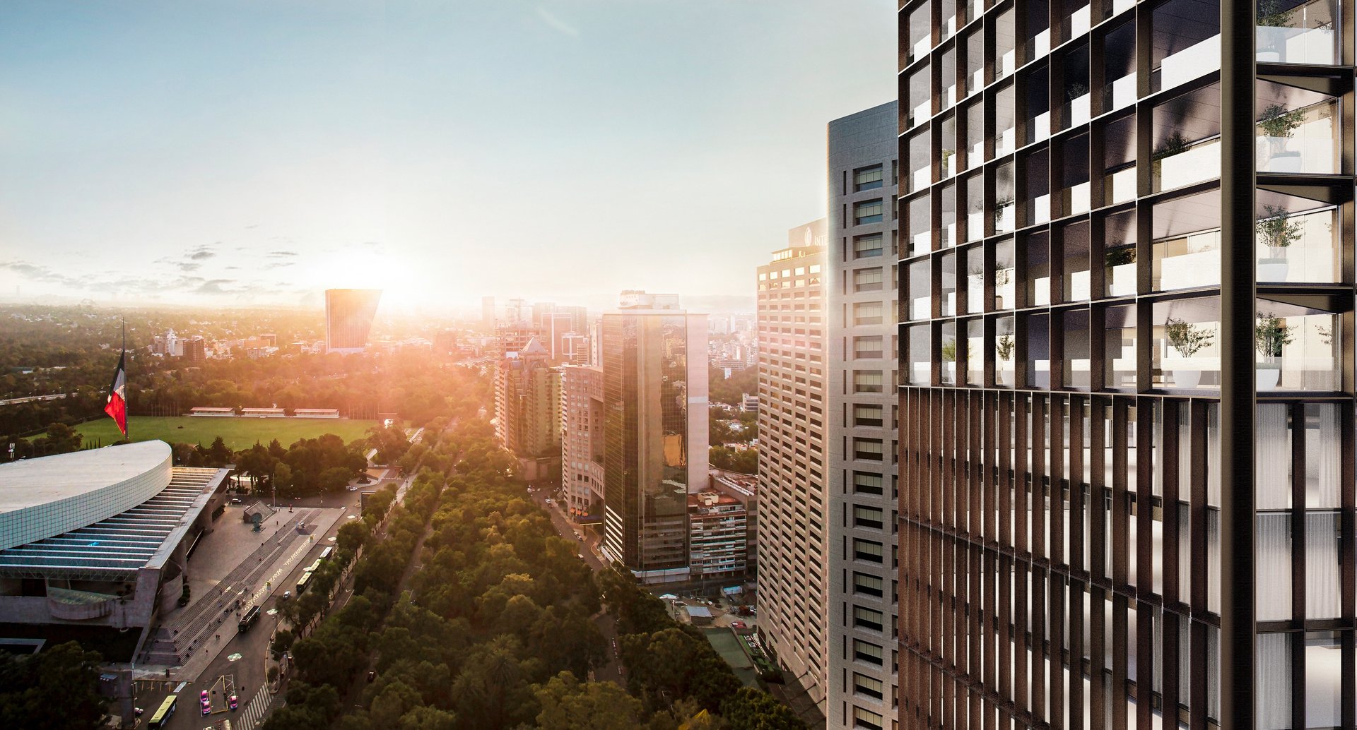 El Escenario: Un balcón directo al pulmón de la ciudad: el Bosque de Chapultepec. Vivir aquí es poseer una de las vistas más icónicas y resguardadas de la metrópoli.